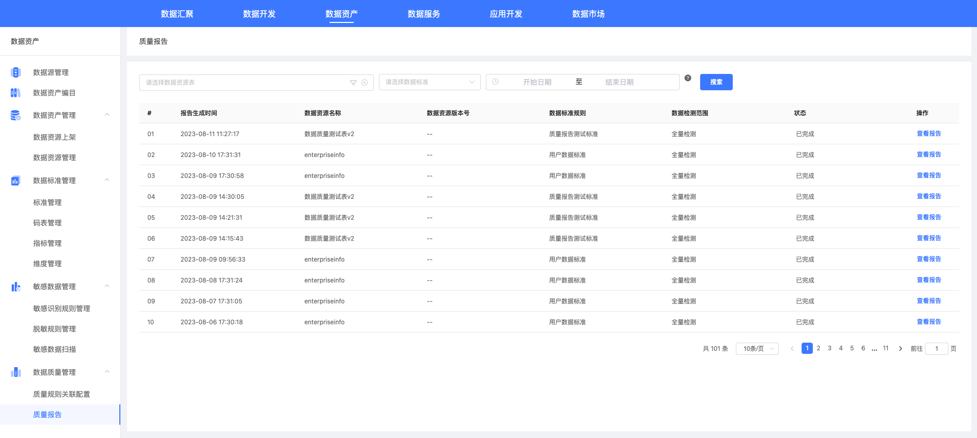 以“一数一源一标准”为目标,建立统一的数据标准规范,事前、事中、事后质量稽核,提供字段级数据链路查询与追溯,全方位提升企业经营数据质量,为经营分析决策提供高质量数据供给。